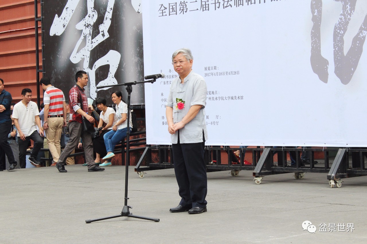 开幕式由中国书法家协会副主席宋华平主持。中国书协副主席刘金凯,广东省文联党组书记、中国书协理事程扬,广东省文联专职副主席李劲堃,中国书协展览部主任王彦,广东省委宣传部文艺处处长许永波,番禺珠江钢管董事长、总经理陈昌,广东省书协顾问卢有光、连登、陈初生、周树坚,广东省书协专职副主席兼秘书长颜奕端,广东省书协副主席王忠勇、丘仕坤、许鸿基、李小如、李远东、陈春盛、陈钦硕,广东省书协主席团成员王道国、沈永泰、倪宽、梁晓庄,广东省书协副秘书长李菲鸿,广州美术学院大学城美术馆馆长左正尧等领导、嘉宾和来自全国各地的书法家、爱好者1000多人出席了开幕式。