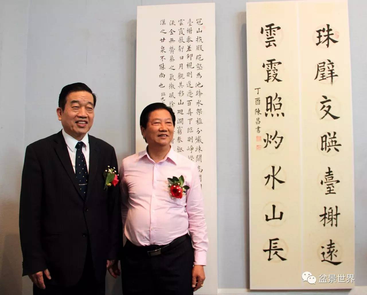 ▲中国书法家协会主席苏士澍(左)与中国风景园林学会花卉盆景赏石分会理事长、中国书法家协会会员陈昌(右)合影。陈昌喜爱书法,尤喜欧阳询的楷书。在盆景创作中,陈昌着意融入欧体的笔法线条与结体构图法则,使得其盆景作品呈现出树势更雄壮,线条更厚重,结构更严谨,态势更险绝的气韵(陈昌盆景作品可点击此处浏览:岭南盆景截干蓄枝探源)。
